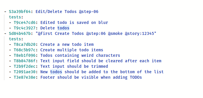 - suite: User Management tests: - test: A new test 1 - A new test 2 # short formatThis structure creates 2 new tests under the new suite “User Management”