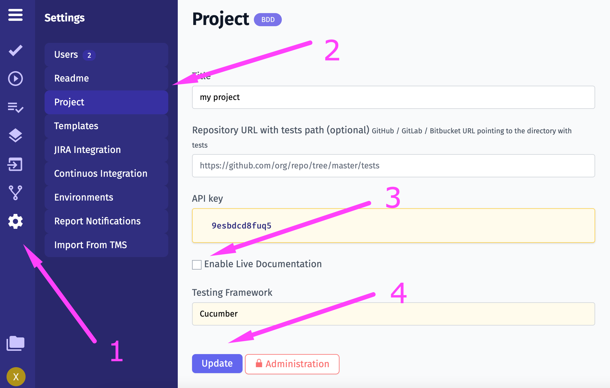 Section titled “How To Enable Living Documentation”Living Documentation can be enabled in Project Settings: