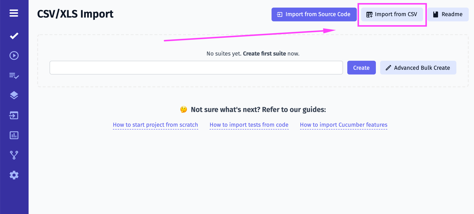 If you have tests in CSV/XLS format - follow this guide to learn how to import your tests to Testomat.io